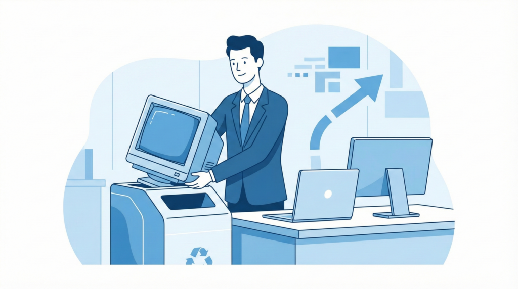 オフィスの移転やパソコンの入れ替え時、情シス・総務担当者を最も悩ませるのが「古いパソコンの廃棄方法」です。 単にゴミとして捨てるだけなら簡単ですが、法人の場合はそうはいきません。一歩間違えれば、廃棄物処理法違反による罰則や、機密情報の流出...
