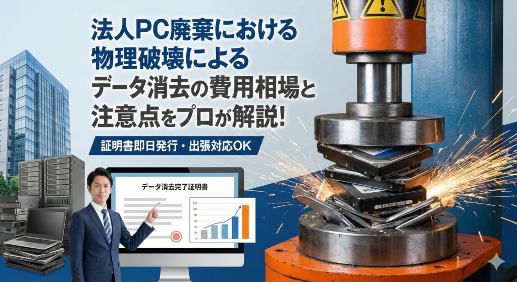 法人パソコンの廃棄をする際の、物理破壊によるデータ消去の費用相場と注意点をプロが解説!